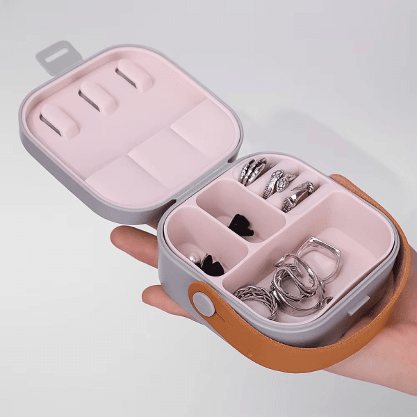 This simple and exquisite jewelry storage box is perfect for organizing and storing your precious accessories. The fashionable design adds a touch of elegance to your dressing table or any space. It has multiple compartments and partitions, providing ample storage space for your rings, earrings, and necklaces. The professional design makes storage more convenient and efficient, allowing you to store items such as lipsticks, wireless headphones, charging cables, and more. This jewelry box’s elegant design also makes it an excellent gift for birthdays, anniversaries, or any special occasion.