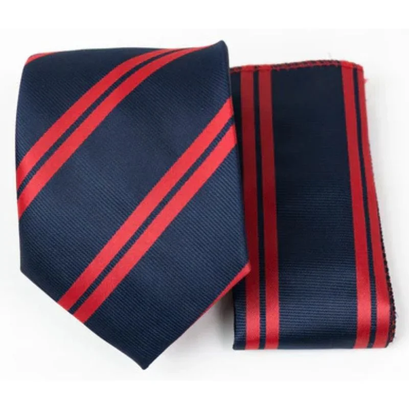 Navy & Red Regal Striped Tie with Pocket Square Set β Premium Menβs Formal Tie Set | Classic Striped Design | Business, Wedding & Party Wear