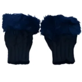 Women’s Faux Fur Fingerless Knitted Gloves | Warm Winter Hand Wrist Warmers | Soft, Stylish & Comfortable | Blue