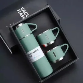 Keep your drinks hot or cold for up to 10 hours with the 3 Cup 500ML Stainless Steel Vacuum Flask Set. Its double-layer insulation maintains temperature while preventing burns or condensation. Designed with a leak-proof stopper, easy-carry handle, and non-slip base, it’s perfect for home, office, gym, travel, or outdoor adventures. The included cups make it convenient to share drinks anytime.