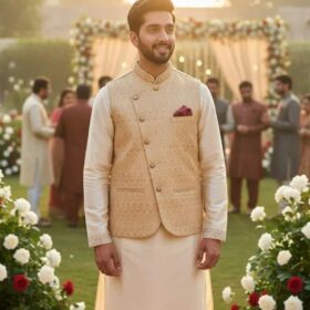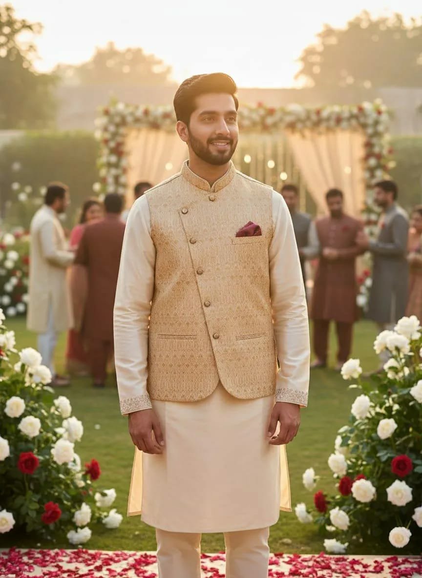Elevate your traditional style with this elegant Men’s Embroidered Cotton Waistcoat, crafted for comfort, sophistication, and festive charm. Made from high-quality cotton, it offers a soft feel with durable stitching and intricate embroidery that enhances its premium look. Perfect for weddings, events, cultural occasions, and formal gatherings.