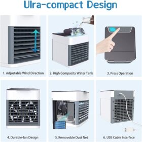 Beat the heat with the Arctic Air Ultra, a compact 3-in-1 mini air cooler that works as a personal AC, humidifier, and LED night light. Powered via USB, it uses advanced evaporative cooling to reduce surrounding temperatures by up to 6°C—without harmful chemicals. With 3 fan speeds, adjustable air vents, and a reusable filter, you can enjoy fresh, cool air wherever you are. Quiet, lightweight, and portable, it’s perfect for bedrooms, offices, or travel.