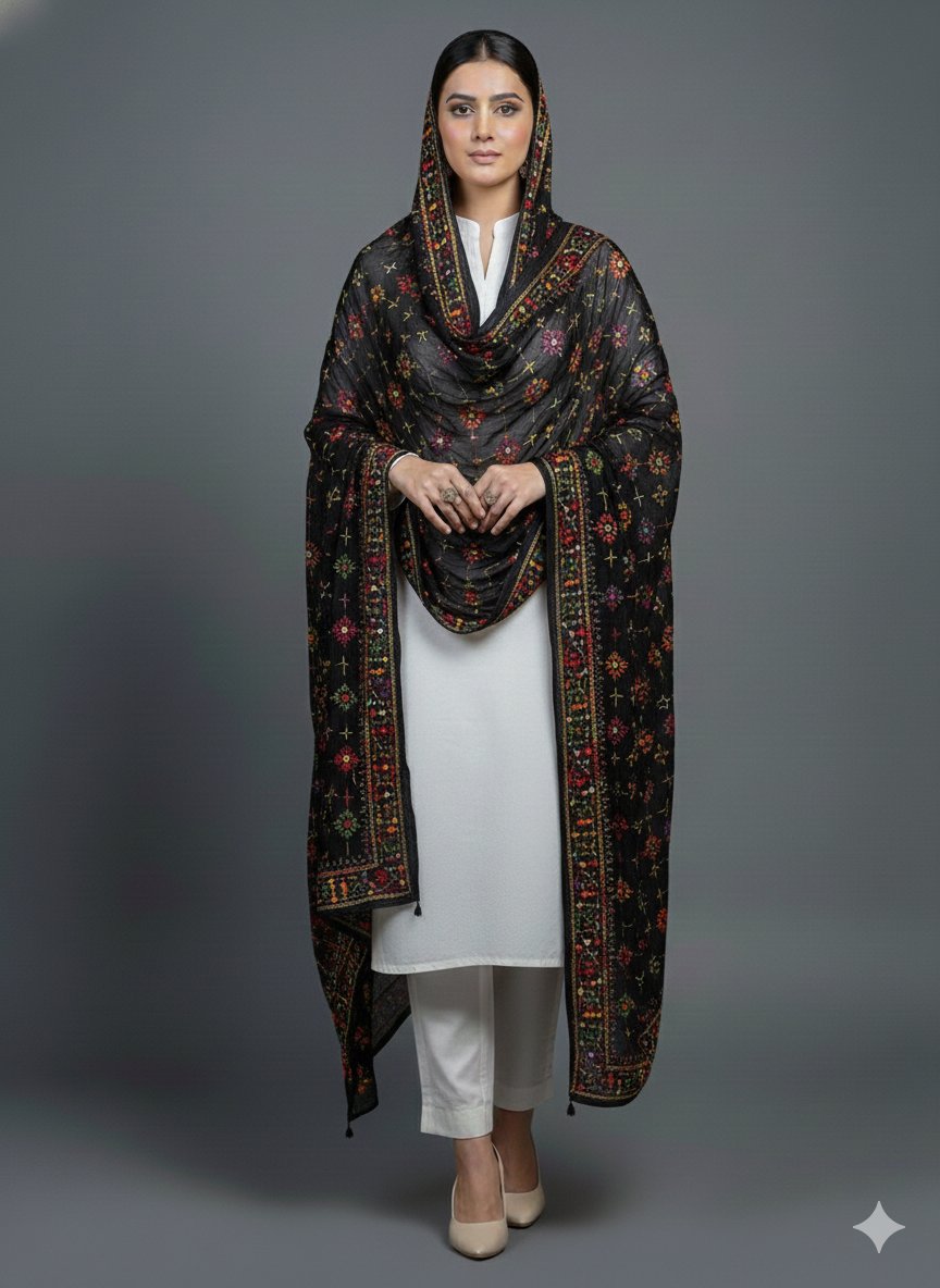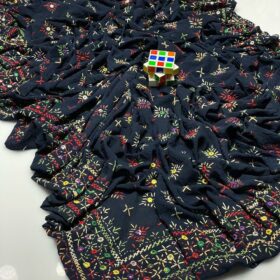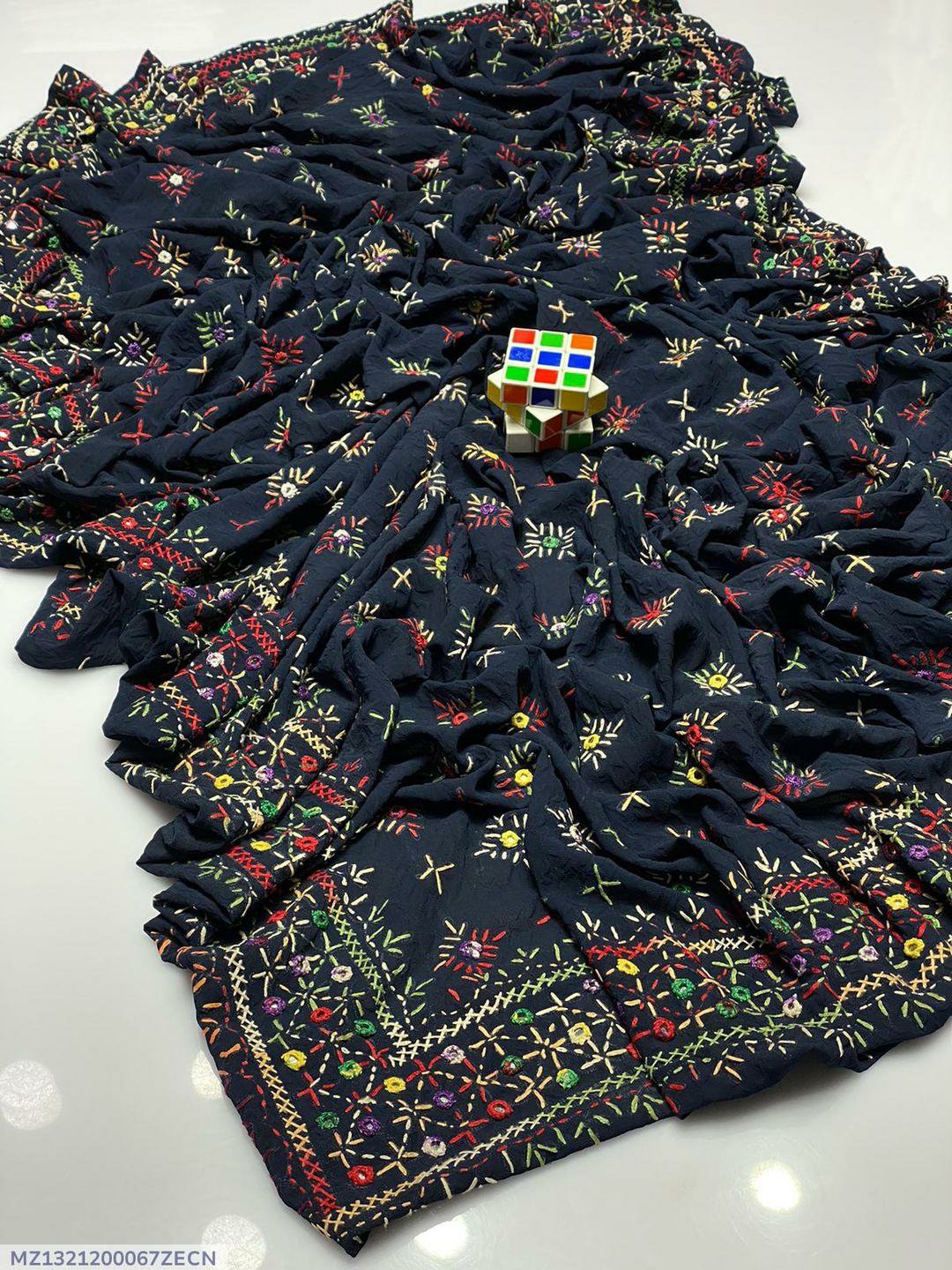 Enhance your outfit with this exquisite blue chiffon dupatta featuring delicate hand work. Lightweight and elegant, it’s perfect for festive occasions, parties, or casual wear.