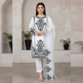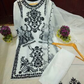 The dupatta is made from premium Organza with beautifully crafted embroidery and stylish frill detailing, giving it a luxurious and modern look.