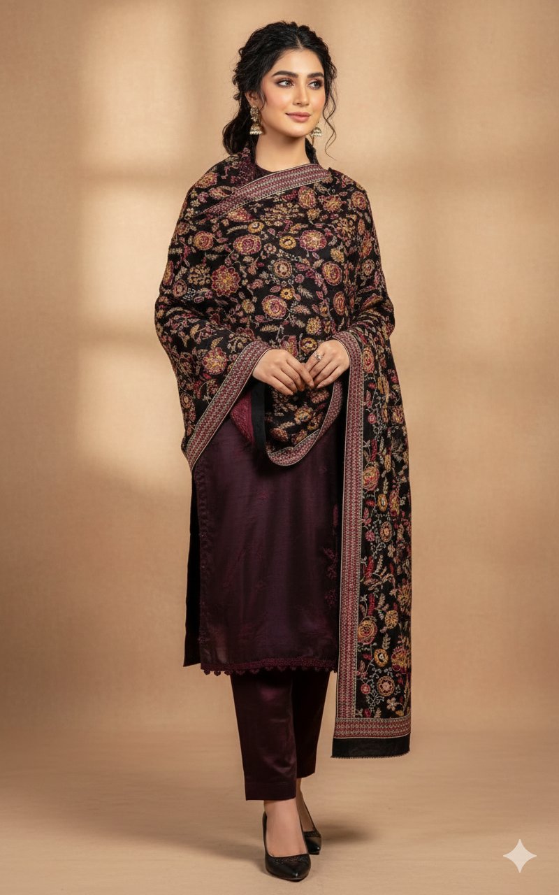 Karandi Embroidered Shawl – Black (Premium Winter Collection)
