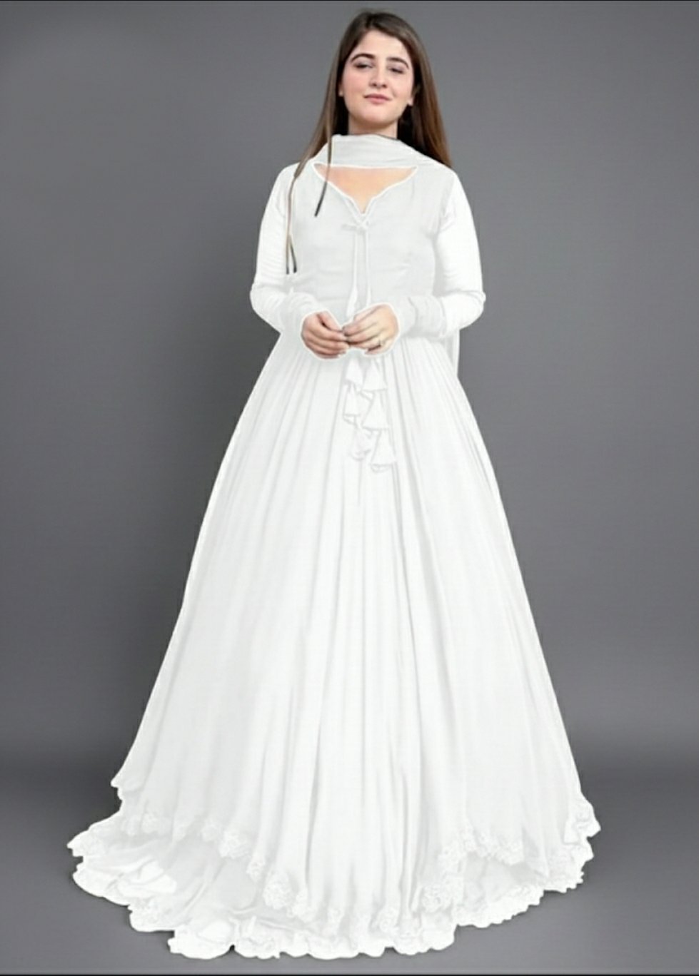 • Two Layers Border Front & Back Lace Work Long Flare Maxi With dupatta 3pcs