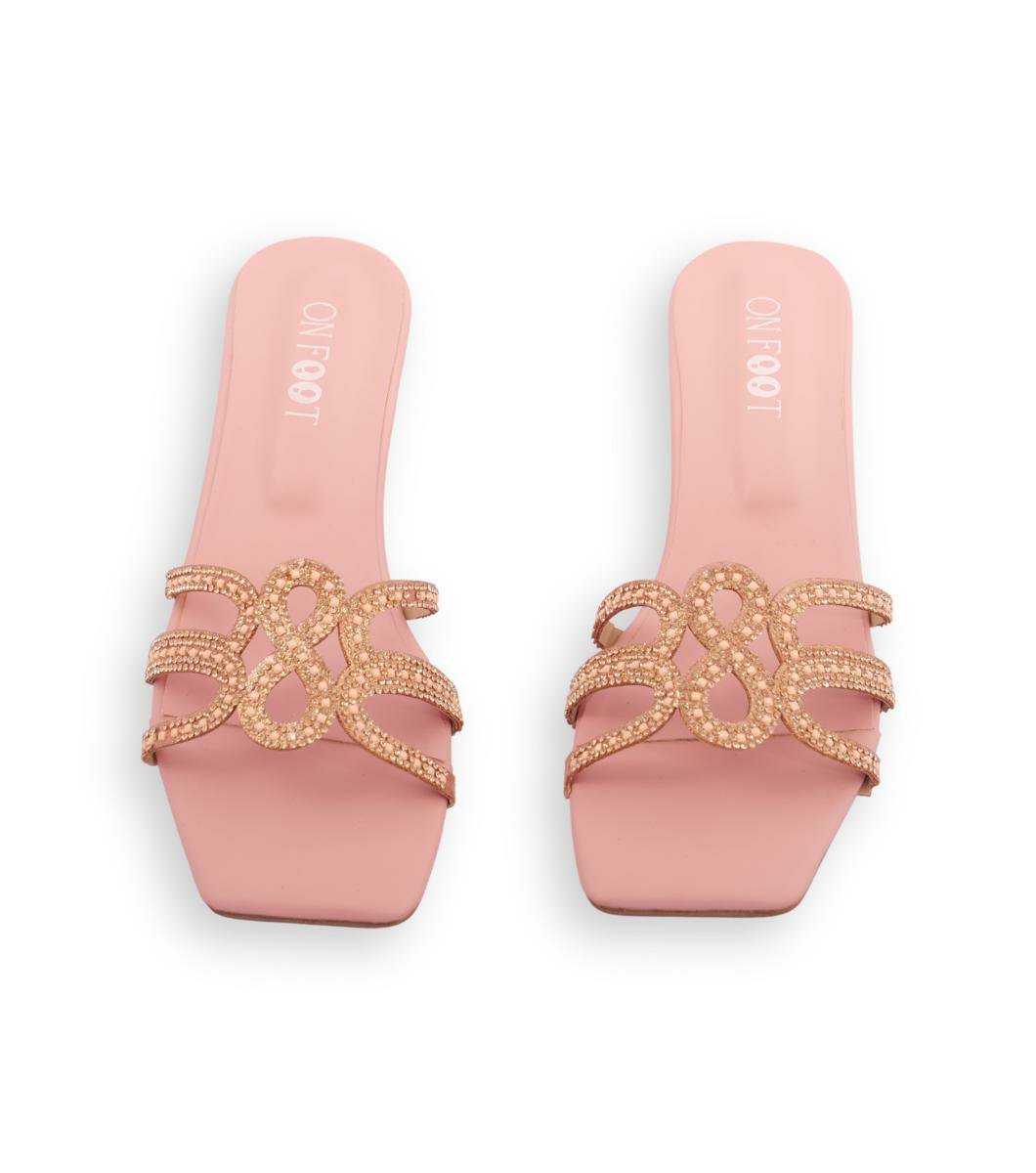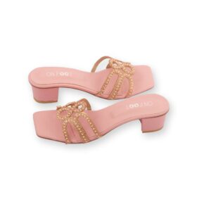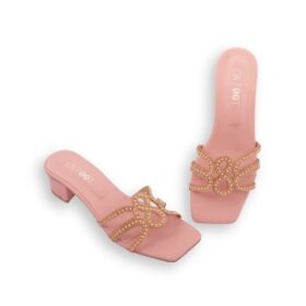 Women’s Pink Rhinestone Rexine Block Heels